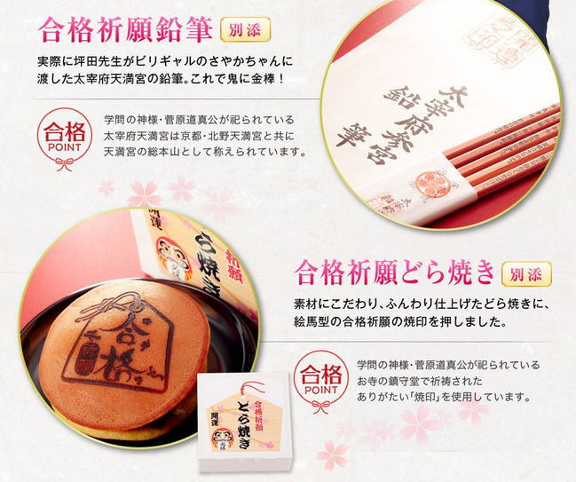 板前魂の合格祈願おせちには、「合格祈願鉛筆」や「合格祈願どら焼」などが付いてきます。