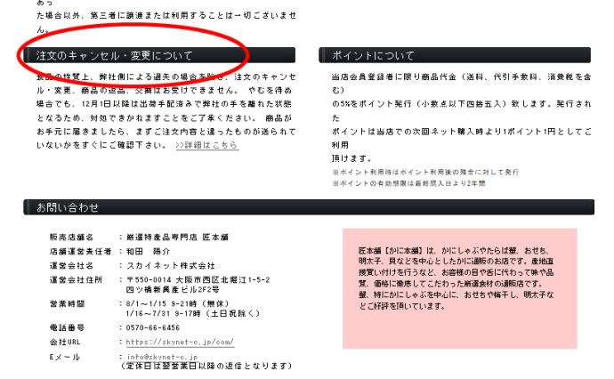 そのような記事は、おせちの各商品の申込みページの最下方に、下記のような「注文のキャンセル・変更について」というタイトルで説明が書かれています。